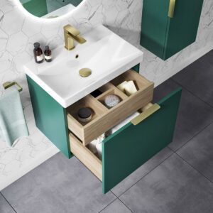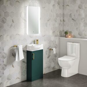 The Casi Cloakroom Unit is ideal for smaller bathrooms and WCs due to it’s small projection of only 275mm – plus its available in the must have bathroom colour – Forest Green.
