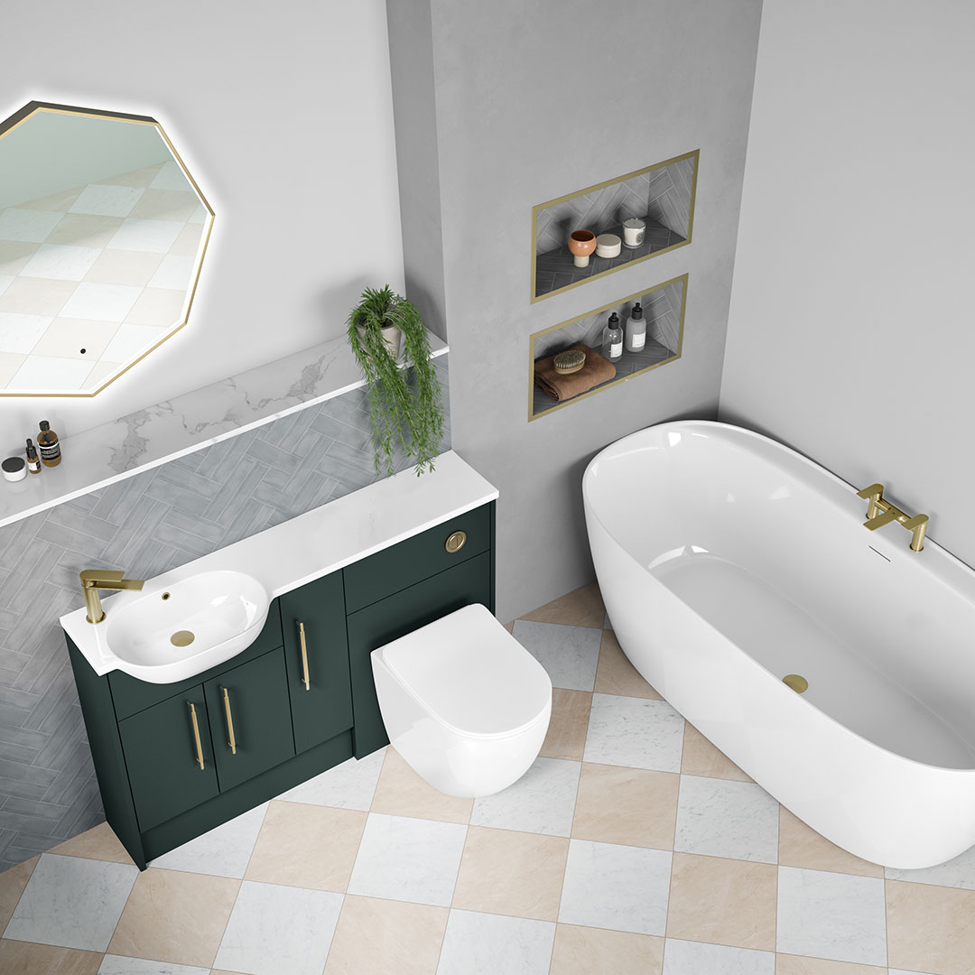 - 1554mm Combi Basin: To be used exclusively with 600mm basin units, leaving adequate space for 900mm of furniture and two end panels.