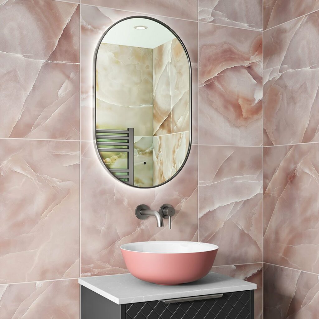 To enhance the ambiance and visual impact of gun metal in your bathroom, carefully consider lighting and mirror choices. Incorporate warm, soft lighting fixtures that highlight the gun metal elements, creating a cozy and inviting atmosphere. Mirrors with gun metal frames like our Finn 50 Gun Metal can further elevate the overall design, adding a sense of cohesiveness.