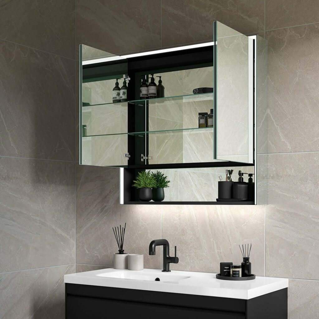 Meet Emer, not just any regular mirror cabinet, but one that comes with the cutting-edge technology of Bluetooth Audio and LED features. This innovative product transforms your everyday routine, blending functionality with technology seamlessly.